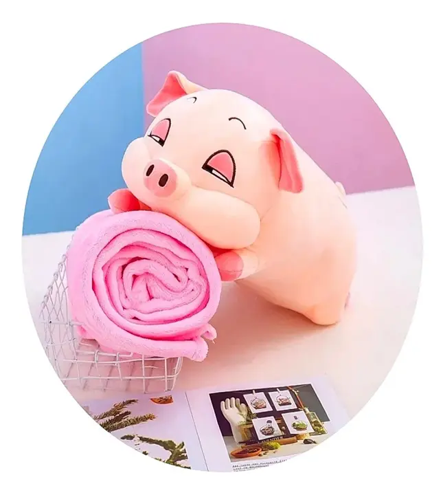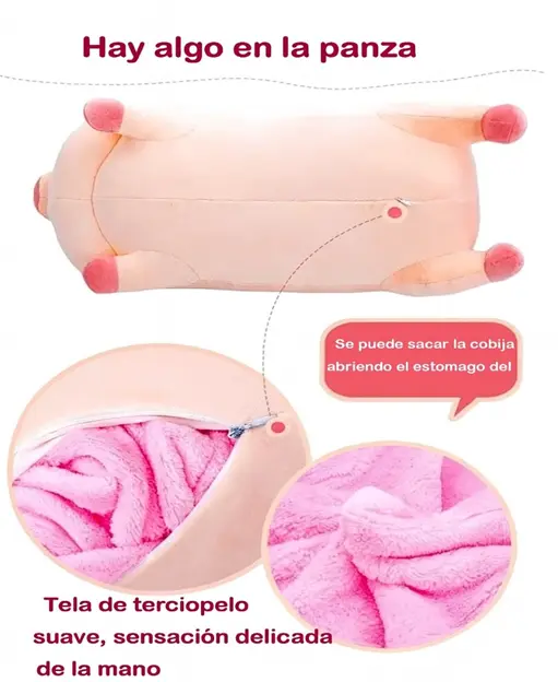 Descripción: Hermoso peluche de cerdito con cobija incluida, es suave y tierno, y perfecto para ayudar en el desarrollo infantil.