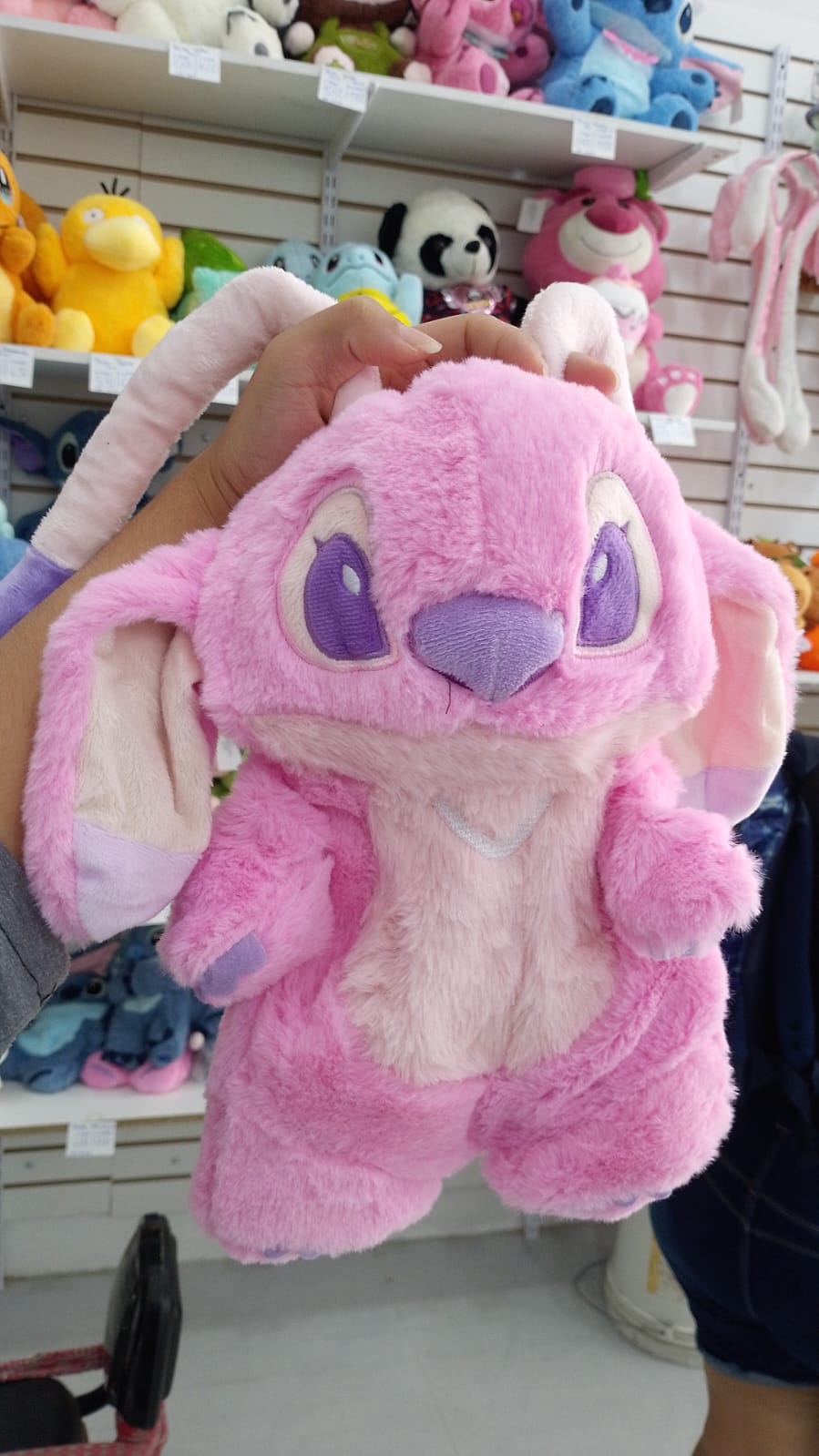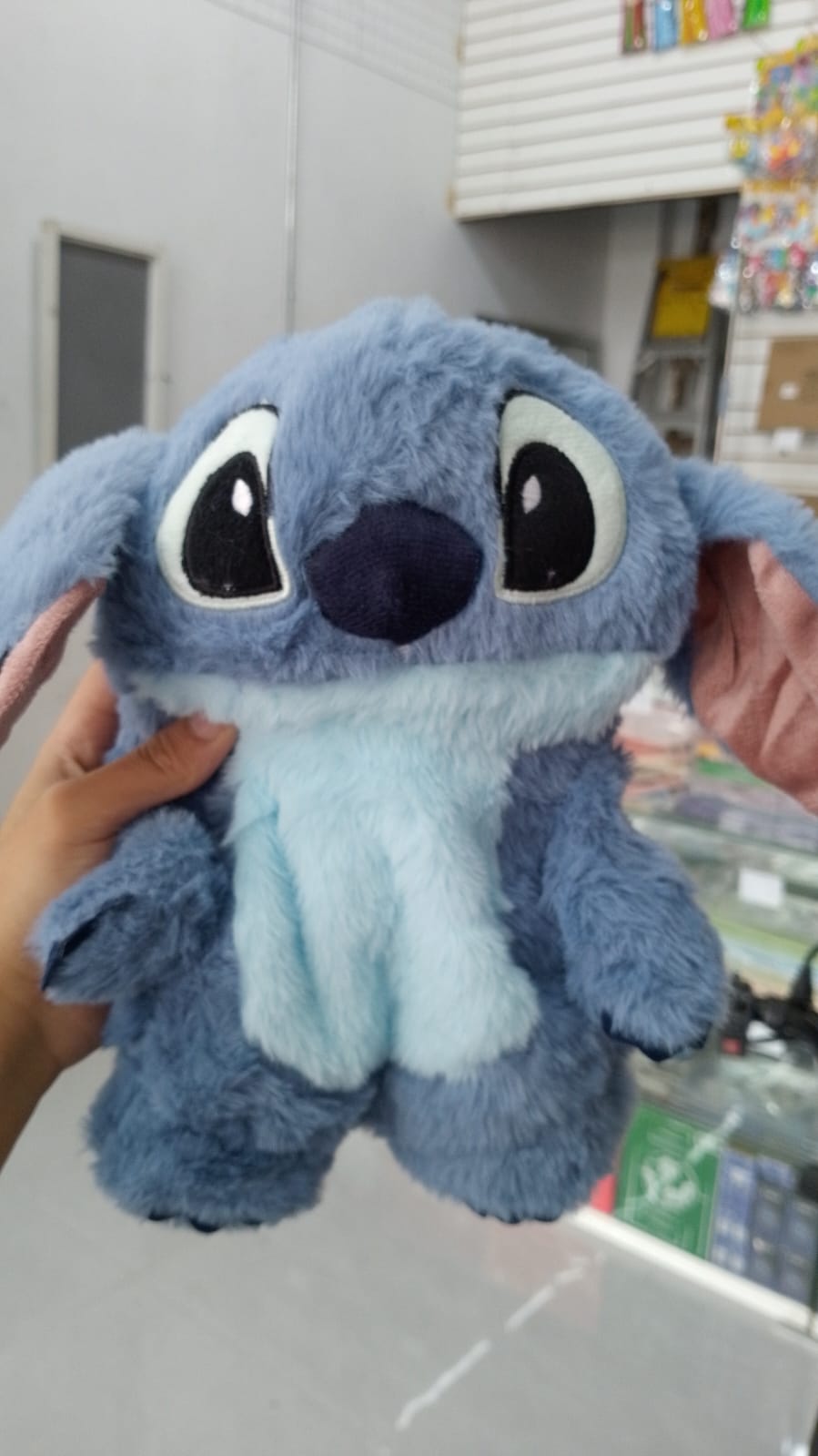 - Diseño: Suele tener una funda de felpa o peluche muy suave que imita al personaje de Stitch, a menudo con detalles como su sonrisa traviesa.